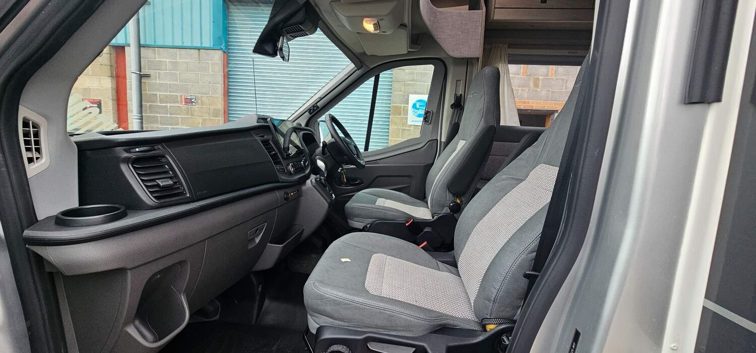 FREE STANDING TABLE, METAL ROLLERBALL DRAWER RUNNERS, FULLY UPHOLSTERED HEIGHT ADJUSTABLE DRIVER AND PASSENGER CAPTAIN'S SEATS WITH TWIN ARMRESTS AND SWIVEL SEAT BASE, BOTTLE/CUP HOLDER AND USB CHARGING POINT, HEATED SCREEN, Auto lights, HIGH SERIES HEADLAMP WITH STATIC BENDING, RAIN SENSING WIPERS, STEERING WHEEL CONTROLS FOR RADIO, COLOUR TOUCHSCREEN DAB RADIO WITH AUX/USB/IPOD CONNECTION AND BLUETOOTH HANDS FREE SYSTEM, MOTORHOME SPECIFIC WESTERN EUROPEAN SATELLITE NAVIGATION SYSTEM, COLOUR REVERSING CAMERA INTEGRATED INTO TOUCHSCREEN HEAD UNIT, CAB AIR CONDITIONING, TV AERIAL PREPARATION, PLEATED BLINDS TO CAB WINDOWS (DRIVER AND PASSENGER ONLY ON A-CLASS), 3year conversion warranty remaining and ford warranty remaining on van. Must be viewed as close to brand new as you will find.