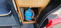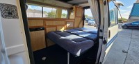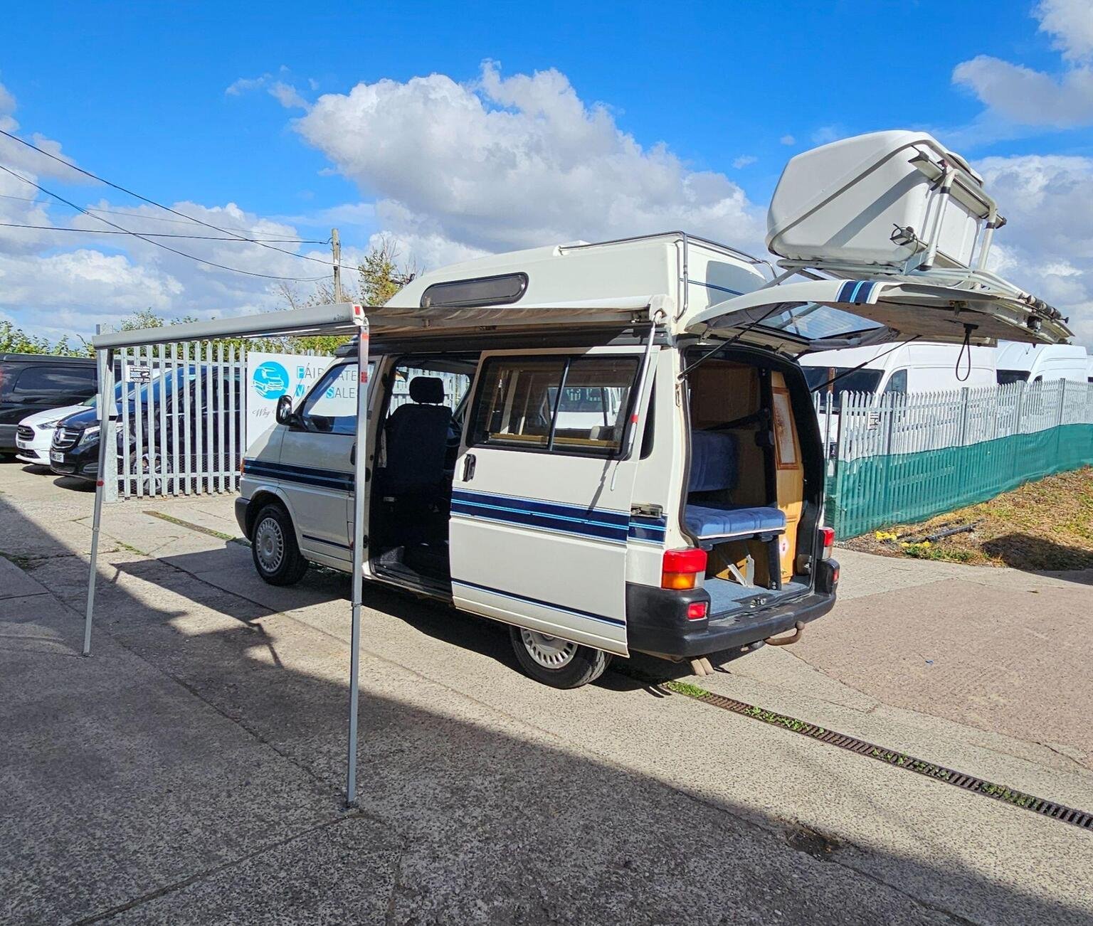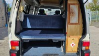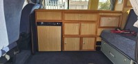 The van has a fully working awning, it is the 2berth version with overhead storage rather then a slide along top bunk. The van has a diesel heater for the rear, 2 burner stove, sink, hot water, rear storage box. Rock and roll bed.