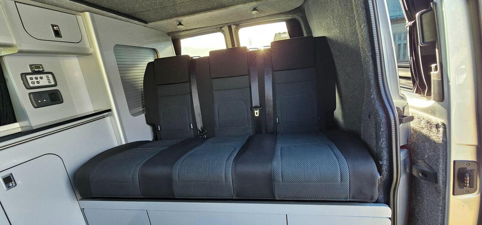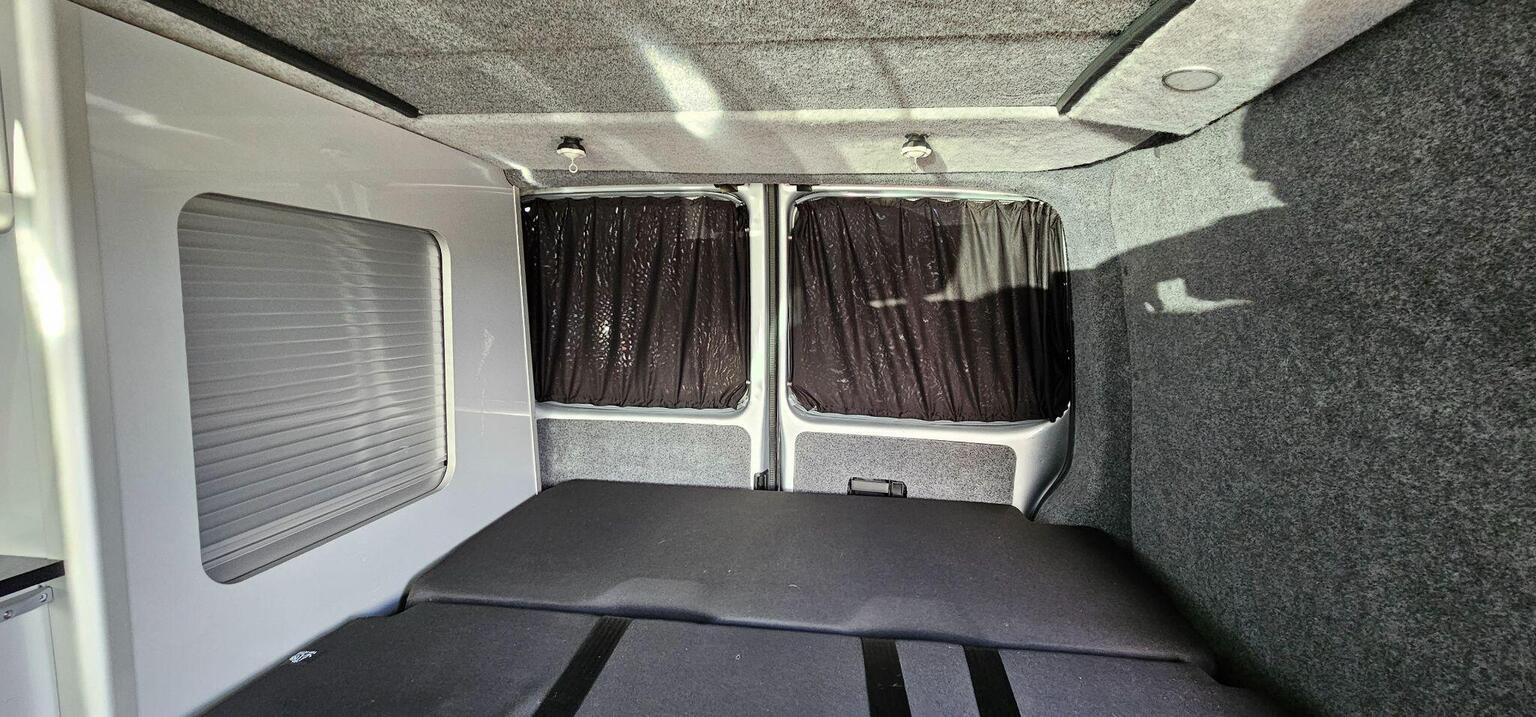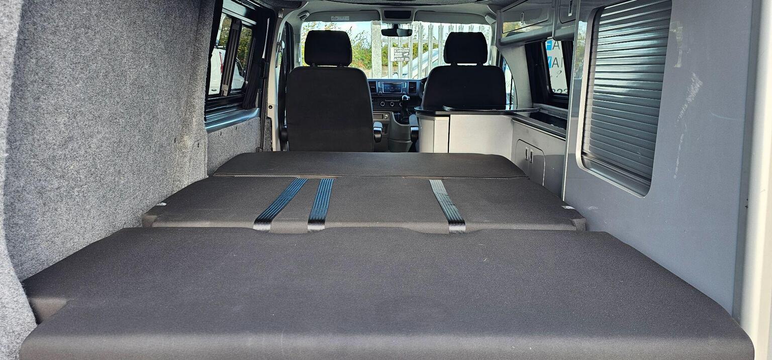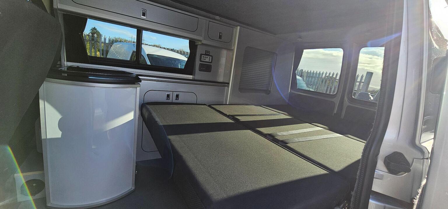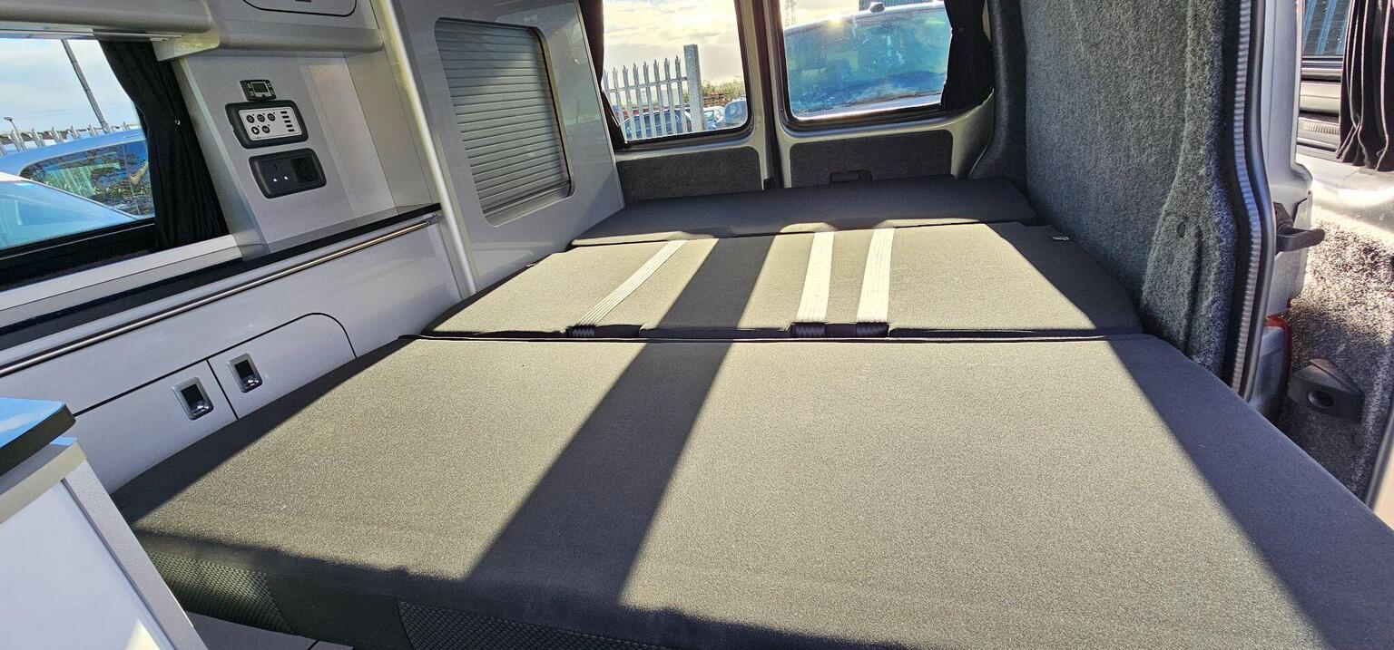 This is a professionally converted campervan. The biggest plus point for a van of this size is it has a rib-bed type. This gives you the greatest width possible for sleeping and is made with factory seat comfort for the journeys ahead when travelling in rear. These aren't cheap beds and only seen in more upmarket conversions.