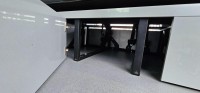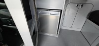 It has full rear electrics and leisure battery power controlling rear lights, water pump, fridge. Your see a unusual design layout whereby the fridge is fully hidden by a cupboard which acts as a secondary fixed workspace or table when you dont want to loose space using the additional table which can be made obsolete apart from eating or kids play.