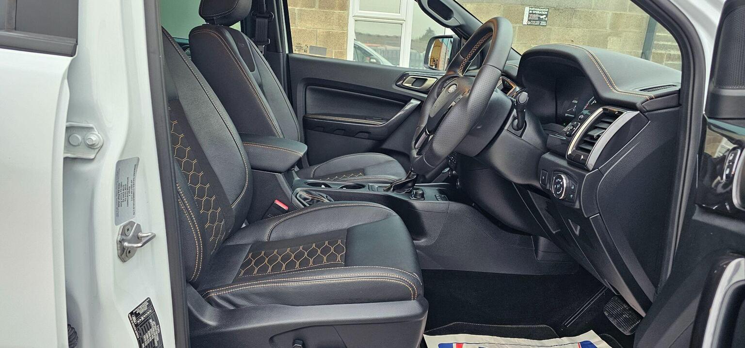 Body Coloured Plastic Front Bumpers, Boulder Grey Exterior Door Handle, Boulder Grey Exterior Mirror Finish, Boulder Grey Radiator Grille, Boulder Grey Step Design Rear Bumper, Cargo Box Power Point Plug, Chrome Lift -Decklid Handle, Collision Mitigation System, Cruise Control with ASLD -AEB and ISA, Day-Night Inside Mirror, Daytime Running Lamps, Double Locking Power Door Lock with Flip Key, Driver Seat Back Mounted Map Pocket, Dual Control System - EATC, Dual Power Heated Fold Back Mirrors with Puddle Lamps and Signal, Dyno Grey Sports Hoop with Side Rails, EPAS - Electric Power Assisted Steering, Ebony Headliner, Electrically-Operated Windows with One-Shot Drivers Window, Electrochromic Inside Mirror, Fixed Rear View Camera, Ford SYNC 3 Single CD-DAB Radio - TMC and Active Noise Cancelling, FordPass Connect, Front Parking Aid, Front Seats - Driver and Passenger Heated Seats, Front Splash Guard - Mud Flaps, Gearshift Knob - Leather, Headlights - LED, Heated Windshield and Rear Window, High Mounted Stop Lamp with Cargo Light, ISOFIX Child Safety Seat Attachments, Inside Chrome Door Handles, Intelligent Speed Assistance, Interior Ambient LED Lighting, LED Front Fog Lamps, Lane Keeping Aid, Leather Seat Trim, Load Box Bedliner, Load Box Bedliner - Power Point and Tie Down Hooks, Load Rest, Loadbox Inside Tie Down Hooks, Locking Rear Axle, Locking Wheel Nuts, Moulded in Colour Tailgate Handle, Mud Flaps - Rear, Painted Front Fender Grill, Passive Anti-Theft System, Passive Keyless Entry and Start, Power Converter, Power Tailgate Lock, Premium Front and Rear Floor Mats, Privacy Glass, Rain Sensitive Windshield Wipers, Rear Bumper Chromed Steel Step, Rear Parking Sensors, Rear Power Point Plug, Roof Rails, Roof Storage for Driver Sunglasses, Seats - Drivers 8-Way Adjustment, Side Step with Brushed Inserts, Spare Wheel Lock, Sport Leather Stitched Steering Wheel, Sports Bar with High Mounted Brake Light, Sports Hoop, TSR - Traffic Sign Recognition, Tailgate with Easy-Lift - Lower Mechanism, Thatcham Category 1 Security System, Tie Down Rail with Rope Hooks, Tyre Pressure Sensors, Under Body Protection, Under Hood Engine Cover, Wildtrak Door Trim Panel Insert, 18in Alloy Wheels - 8in Boulder Grey-Machined, 2 Key Fobs, ABS - ESP and Roll-Over Mitigation, Airbags - Curtain, Airbags - Driver and Front Passenger, Airbags - Drivers Knee Bolster, Airbags - Front Side