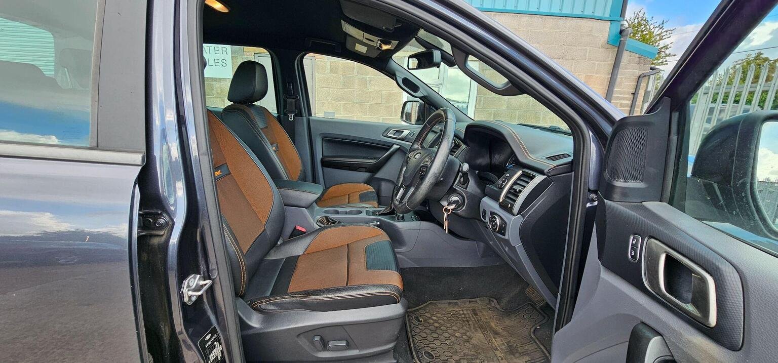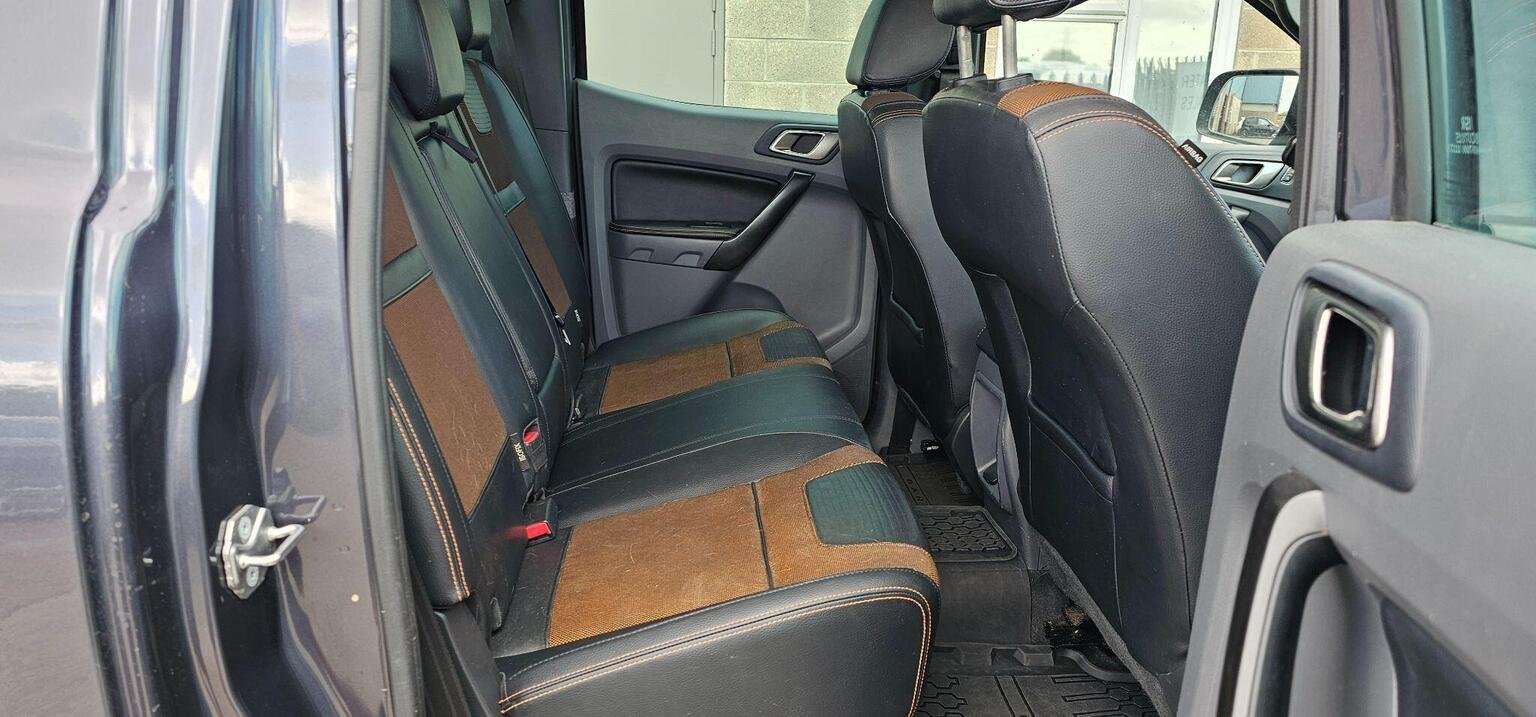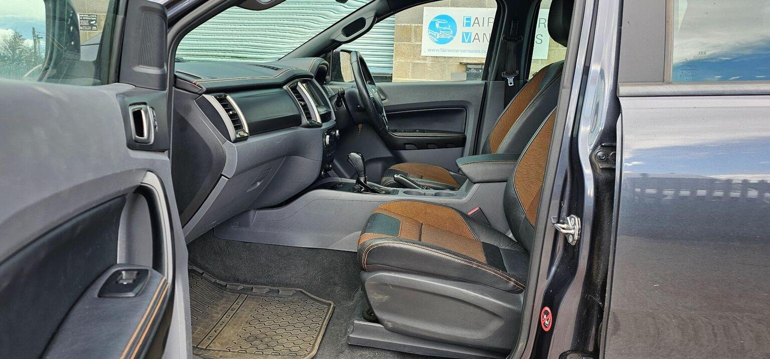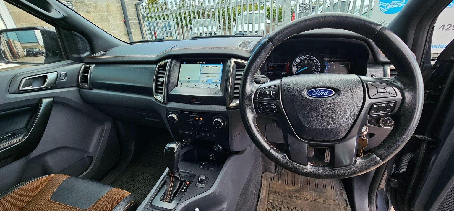 Bumper - Front Body Colour with Sports Highlighting, Bumper - Rear Stepped Steel - Titanium, CBC - Cornering Brake Control, Coolbox in Centre Console, Courtesy Light - Ice Blue Ambient Interior Light with Dimming Control, Courtesy Light - Overhead with Theatre-Style Dimming, Courtesy Lights with Map Reading Lights, Cruise Control with Adjustable Speed Limiter, DAB Digital Radio, Digital Tachograph Sensor Port, Door Handles - Black, Door Mirrors - Puddle Lights, Door Mirrors - Titanium, Door Mirrors with Integrated Indicators, Drivers Airbag, Drivers Seat Lumbar Support, EBA - Emergency Brake Assist, EPAS - Electric Power Assisted Steering, ESP - Electronic Stability Programme, Electric Windows - Front and Rear with One Touch Drivers, Electronic High and Low Range Selection, Emergency Brake Lights, Engine Drag Control, Engine Immobiliser - Passive Anti-theft System, Floor Covering - Carpeted, Floor Mats - Premium Carpet with Wildtrak Logo, Ford Easy-Fuel Capless Refuelling System, Ford SYNC2, Front Fog Lights, Front Grille - Titanium Effect, HLA - Hill Launch Assist, Headlights - Automatic, Heated Windscreen, Hill Descent Control, ISOFIX - Child Seat Attachments, LAC - Load Adaptive Control, Load Box Light, Locking Wheel Nuts, Mid-Light Tint on Rear Windows, Mobile WiFi Hotspot Capable, Mudflaps - Front, Mudflaps - Rear, Overhead Storage Shelf, Parking Sensor - Rear, Pick Up Box - C Channel Cargo Area Management Tie Down System, Pollen Filter, Power Fold Door Mirrors, ROM - Roll Over Mitigation, Radio CD Player MP3 Compatible, Rear View Camera, Remote Central Locking, Roof Rails - Aluminium Finish, SD Card Reader and Mini EFP, Satellite Navigation - Navigation Center, Seat Belt Reminder System - Drivers and Front Passengers, Seats - Front 8-Way Power Adjustment, Seats - Front Heated, Side Steps - Stainless Steel, Silver Steel Side Bars, Spare Wheel Lock, Spare Wheel with Cover - Alloy, Speakers - x6, Sports Bar - Aerodynamic, Steering Wheel - Leather, Steering Wheel - Multifunction, Steering Wheel - Wildtrak Stitching, Sunglasses Holder, Sunvisors - Illumination of Driver and Passenger, TMC - Traffic Message Channel, Thatcham Category 1 Alarm, Traction Control - TC, Trailer Sway Control, Trip Computer, Two 12V Power Socket, Tyre Pressure Monitoring System, USB Connection x2, Voice Control - Audio, Voice Control - Phone, 18in Alloy Wheels, 8in Touchscreen Colour Display, ABS - Anti-lock Braking System, AUX Audio Input 3.5 mm Jack, Air Conditioning - Dual Zone Electronic Automatic Temperature Control, Airbags - Curtain, Airbags - Drivers Knee, Airbags - Front Passenger, Airbags - Passenger Deactivation, Airbags - Side Thorax, Automatic Dimming Rear View Mirror, Automatic Rain Sensing Wipers, Bedliner with Protective Side Walls, Bluetooth - Audio Streaming, Bluetooth Handsfree Phone System