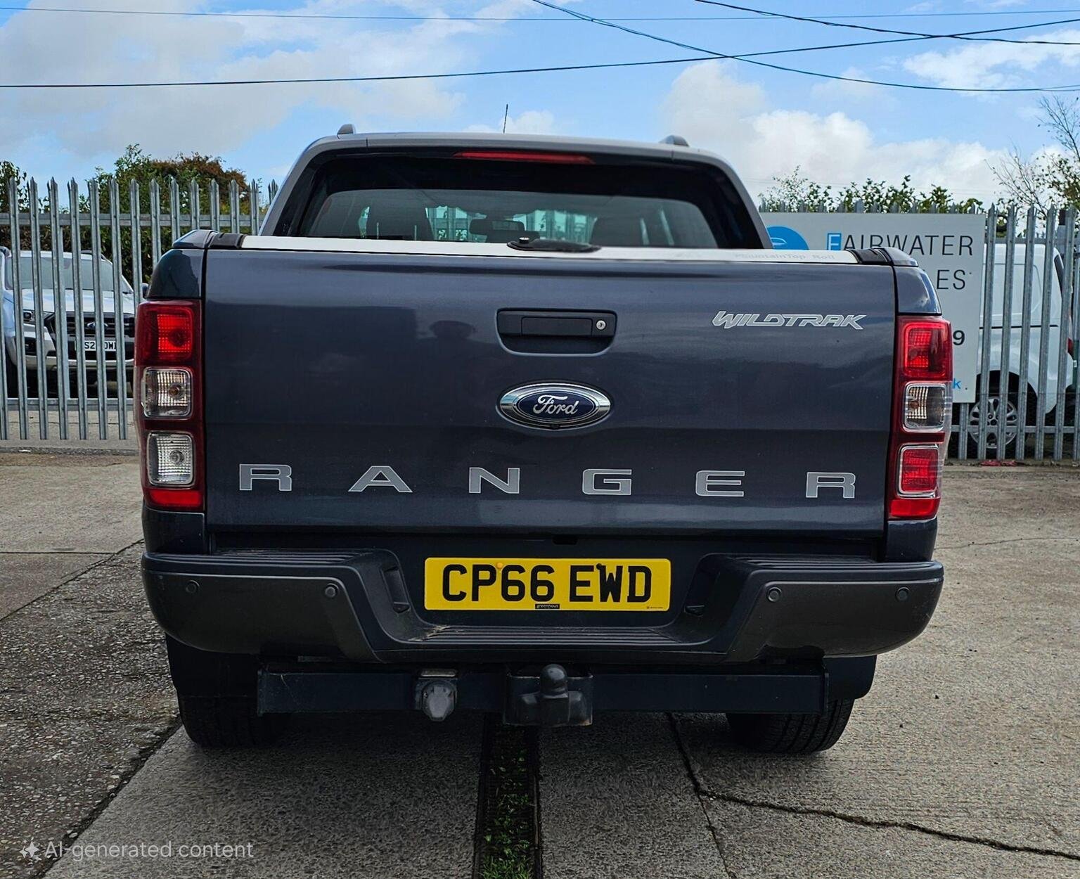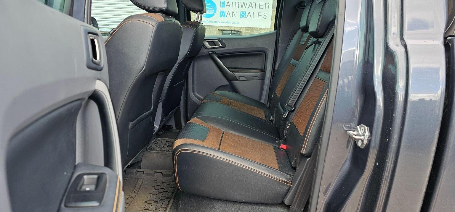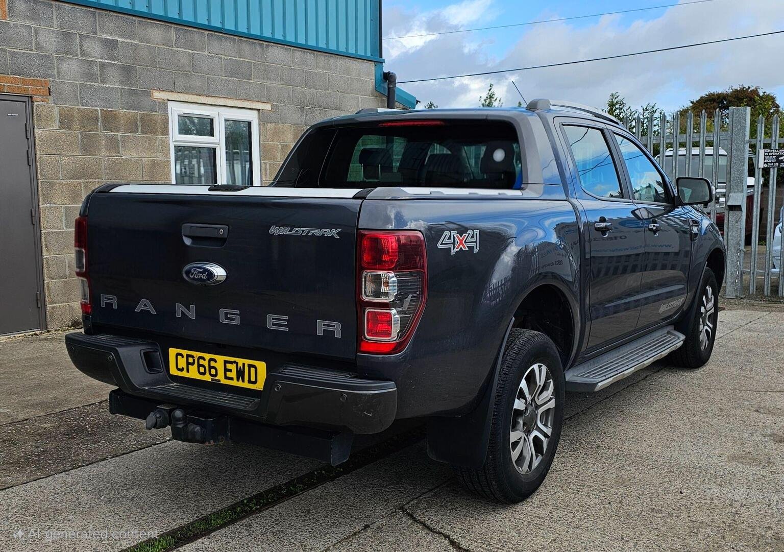Bumper - Front Body Colour with Sports Highlighting, Bumper - Rear Stepped Steel - Titanium, CBC - Cornering Brake Control, Coolbox in Centre Console, Courtesy Light - Ice Blue Ambient Interior Light with Dimming Control, Courtesy Light - Overhead with Theatre-Style Dimming, Courtesy Lights with Map Reading Lights, Cruise Control with Adjustable Speed Limiter, DAB Digital Radio, Digital Tachograph Sensor Port, Door Handles - Black, Door Mirrors - Puddle Lights, Door Mirrors - Titanium, Door Mirrors with Integrated Indicators, Drivers Airbag, Drivers Seat Lumbar Support, EBA - Emergency Brake Assist, EPAS - Electric Power Assisted Steering, ESP - Electronic Stability Programme, Electric Windows - Front and Rear with One Touch Drivers, Electronic High and Low Range Selection, Emergency Brake Lights, Engine Drag Control, Engine Immobiliser - Passive Anti-theft System, Floor Covering - Carpeted, Floor Mats - Premium Carpet with Wildtrak Logo, Ford Easy-Fuel Capless Refuelling System, Ford SYNC2, Front Fog Lights, Front Grille - Titanium Effect, HLA - Hill Launch Assist, Headlights - Automatic, Heated Windscreen, Hill Descent Control, ISOFIX - Child Seat Attachments, LAC - Load Adaptive Control, Load Box Light, Locking Wheel Nuts, Mid-Light Tint on Rear Windows, Mobile WiFi Hotspot Capable, Mudflaps - Front, Mudflaps - Rear, Overhead Storage Shelf, Parking Sensor - Rear, Pick Up Box - C Channel Cargo Area Management Tie Down System, Pollen Filter, Power Fold Door Mirrors, ROM - Roll Over Mitigation, Radio CD Player MP3 Compatible, Rear View Camera, Remote Central Locking, Roof Rails - Aluminium Finish, SD Card Reader and Mini EFP, Satellite Navigation - Navigation Center, Seat Belt Reminder System - Drivers and Front Passengers, Seats - Front 8-Way Power Adjustment, Seats - Front Heated, Side Steps - Stainless Steel, Silver Steel Side Bars, Spare Wheel Lock, Spare Wheel with Cover - Alloy, Speakers - x6, Sports Bar - Aerodynamic, Steering Wheel - Leather, Steering Wheel - Multifunction, Steering Wheel - Wildtrak Stitching, Sunglasses Holder, Sunvisors - Illumination of Driver and Passenger, TMC - Traffic Message Channel, Thatcham Category 1 Alarm, Traction Control - TC, Trailer Sway Control, Trip Computer, Two 12V Power Socket, Tyre Pressure Monitoring System, USB Connection x2, Voice Control - Audio, Voice Control - Phone, 18in Alloy Wheels, 8in Touchscreen Colour Display, ABS - Anti-lock Braking System, AUX Audio Input 3.5 mm Jack, Air Conditioning - Dual Zone Electronic Automatic Temperature Control, Airbags - Curtain, Airbags - Drivers Knee, Airbags - Front Passenger, Airbags - Passenger Deactivation, Airbags - Side Thorax, Automatic Dimming Rear View Mirror, Automatic Rain Sensing Wipers, Bedliner with Protective Side Walls, Bluetooth - Audio Streaming, Bluetooth Handsfree Phone System
