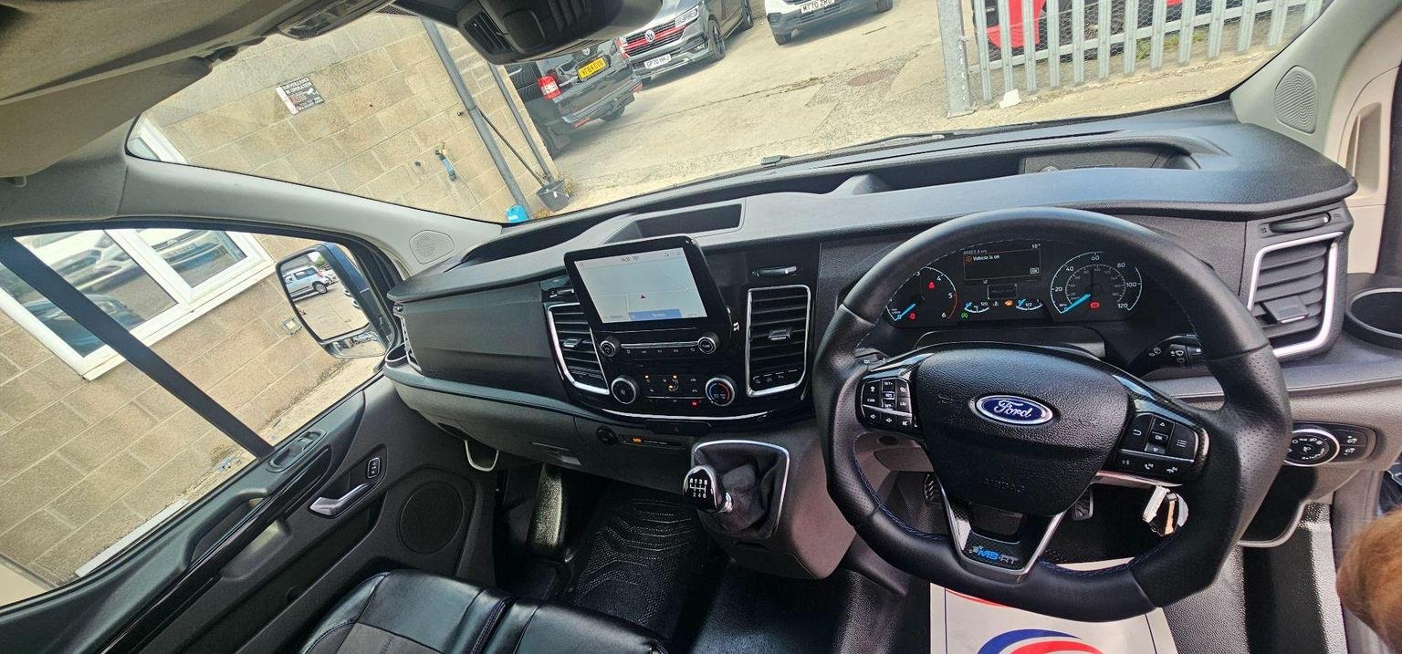 16in Alloy Wheels, 2nd Remote Key Fob, 8 Way Adjustable Drivers Seat with Armrest, ABS - Anti-lock Braking System, Airbag - Front Passenger, Automatic Headlights - Follow Me Home, Automatic Headlights with Rain Sensing Wipers, Body Colour Front Bumper and Mirror Housing, Body Colour Rear Bumper, Bodyside Mouldings - Body Colour, Bulkhead - Full Steel with Load Through Hatch, Chrome Grille with 3 Bars, Colour Keyed Exterior Pack, Complete Rear Trim Board - Half Height, Cruise Control, Door Handles - Body Colour, Drivers Airbag, EBA - Emergency Brake Assist, ESC - Electronic Stability Programme, Easy Clean Load Floor, Electrically-Operated Front Windows with One Touch Drivers, Ford Eco Mode - Driver Information System, Front Manual Air Conditioning, Gear Knob - Leather, Halogen Headlights with Courtesy Delay, Halogen Projector Headlights with LED Daytime Running Lights and Adaptive Cornering Front Fog Lights, Heavy Duty Alternator, Hill Start Assist, ICE Pack 21 - SYNC3 Audio, Interior Grab Handles - Front, LED Load Compartment Light, Light Tinted Glass - ilo Privacy Glass, Load Compartment - Protection Kit, Load Compartment - Tie Down Loops x8, Lockable Glovebox, Mini Overhead Console, Moulded Load Floor Liner, Parking Aid - Front and Rear with Front Fog Lamps, Passenger Side Sliding Load Door with Track Cover, Power Assisted Steering, Power Door Deadlocks - Shielded, Power Foldable and Heated Mirrors, Quickclear Heated Windscreen, RSC - Roll Stability Control, Rear Doors - 180° Opening - Unglazed - Positive Stop at 90°, Remote Central Door Locking with Deadlocks, Seat Pack 25, Seats - Dual Passenger with Underseat Stowage, Selectable Drive Mode, Shift Indicator Light, Side Wind Mitigation, Spare Wheel - Conventional, Steering Column - Rake and Reach Adjustment, Steering Wheel - Leather-Trimmed, Steering Wheel Controls, Sunglasses Holder in Roof Stowage, Sunvisors - Illumination of Driver and Passenger, Thatcham Category 1 Alarm, Traction Control - TC, Trailer Sway Control, Trip Computer, Two 12V Power Socket, Vehicle Maintenance Monitor, Water in Fuel Filter with Sensor